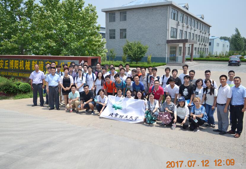 2017年7月12日,安丘博陽機(jī)械與北京理工大學(xué)實(shí)習(xí)基地簽約暨揭牌儀式在安丘博陽機(jī)械會(huì)議室隆重召開,出席本次會(huì)議的有北京理工大學(xué)智能機(jī)