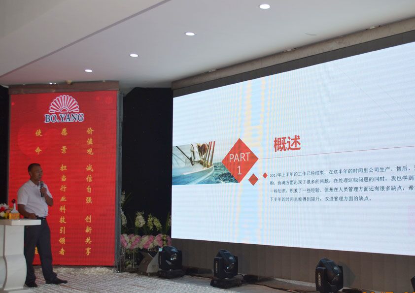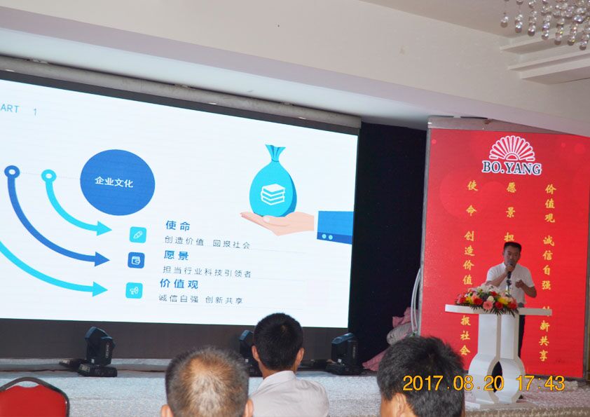 2017年8月20日下午,安丘博陽機(jī)械制造有限公司2017年度年中總結(jié)會議暨下半年目標(biāo)達(dá)成動員大會在安丘匯泉酒店召開。總經(jīng)理閆吉祥,副總