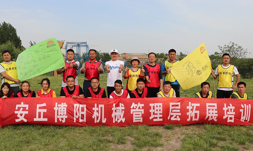為了加強員工團隊意識,提高工作的熱情,打造新型的博陽企業(yè)文化,2019年5月4日,五四青年節(jié)這一天,博陽機械組織管理層在齊魯酒地開展為期一天的拓展培訓(xùn),管理層中共有20名同事參加。此次活動得到了公司領(lǐng)導(dǎo)的重視和支持,部分領(lǐng)導(dǎo)如孫總、岳總、李總等全程參加了培訓(xùn)。