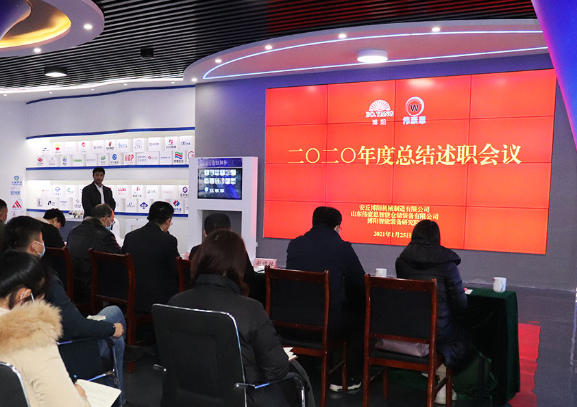 2021年1月25日下午,博陽(yáng)機(jī)械2020年度工作總結(jié)會(huì)在公司企業(yè)展廳內(nèi)召開(kāi),公司副總李文明、孫紅金,偉豪思總經(jīng)理郭偉、研究院院長(zhǎng)趙修林