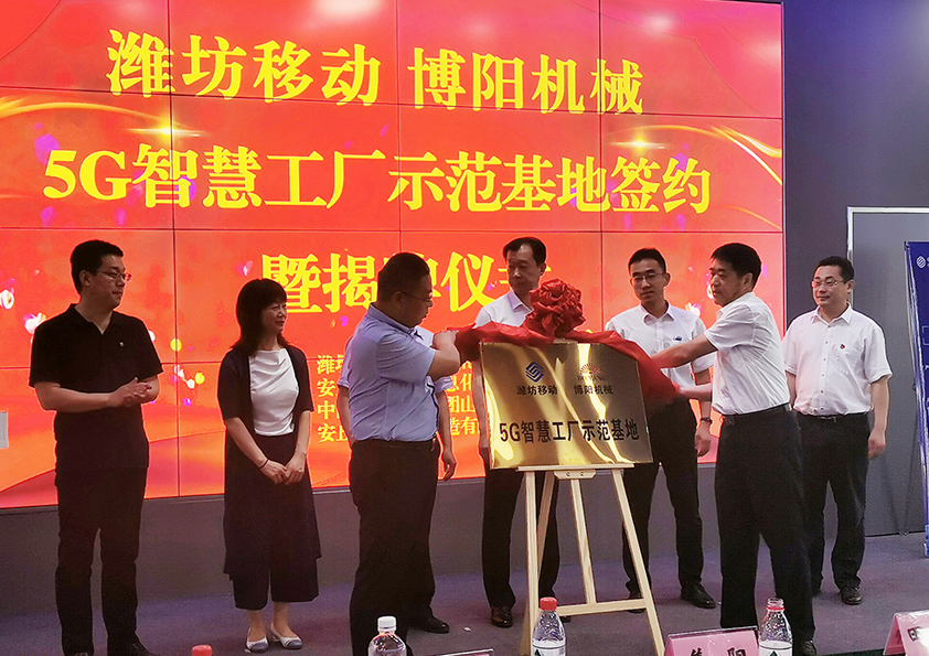 2021年6月11日上午,濰坊移動&博陽機械5G智慧工廠示范基地簽約暨揭牌儀式在博陽機械展廳內(nèi)隆重舉行,濰坊市工信局四級調(diào)研員韓志東、博陽機械總經(jīng)理閆吉祥、濰坊市工信局工業(yè)互聯(lián)網(wǎng)科副科長趙建全、安丘市工信局信息化推進科科長宋曉東、中國移動通信集團山東有限公司DICT中心副總經(jīng)理田經(jīng)師、中國移動通信集團山東有限公司DICT中心5G專家于鵬、及中國移動濰坊分公司副總經(jīng)理焦陽出席本次活動。