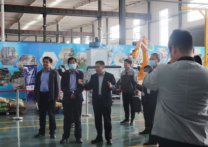 博陽機(jī)械總經(jīng)理閆吉祥陪同各政府工作人員參觀了公司的產(chǎn)品調(diào)試車間和企業(yè)技術(shù)成果展廳。閆吉祥總經(jīng)理不僅各政府領(lǐng)導(dǎo)介紹了智能化拆碼垛機(jī)器人、自動(dòng)化出入庫AGV、智能立體倉庫等核心產(chǎn)品,并向各級(jí)政府領(lǐng)導(dǎo)展示了公司依托大數(shù)據(jù)、物聯(lián)網(wǎng)、云計(jì)算、資源信息共享平臺(tái)及利用“5G技術(shù)+互聯(lián)網(wǎng)+智能制造+定制化服務(wù)”理念和思維方式,以科技創(chuàng)新為核心,以品牌戰(zhàn)略、精細(xì)化營銷戰(zhàn)略、人才戰(zhàn)略、信息化戰(zhàn)略為支撐,實(shí)現(xiàn)了高端裝備制造行業(yè)供應(yīng)鏈、產(chǎn)業(yè)鏈的萬物互聯(lián)。
