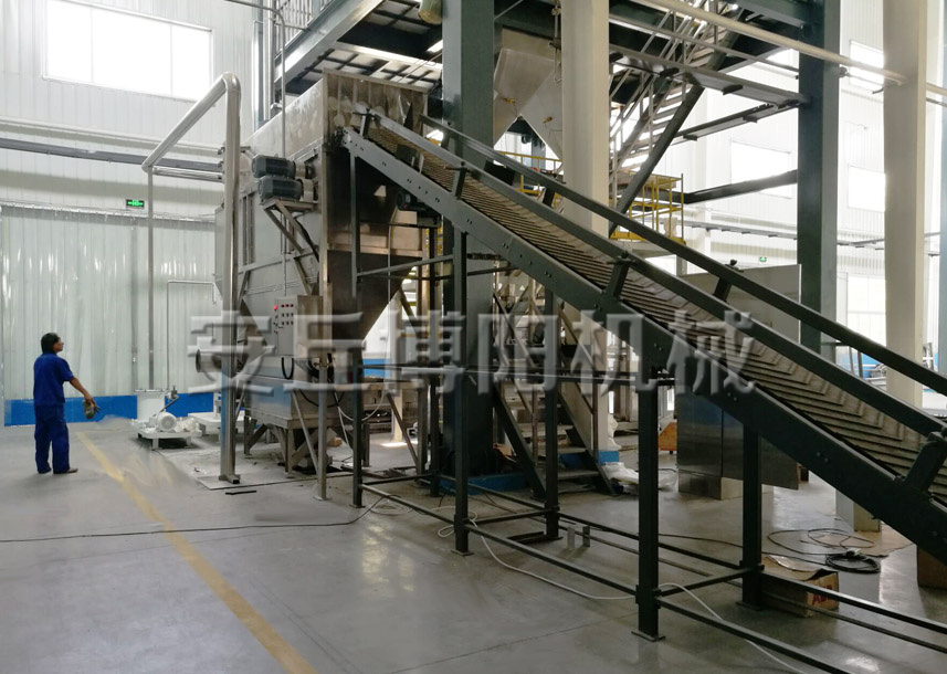 5、傾斜的槳葉幫助料袋移至圓筒篩的出口,接著它們滑入已裝配的廢袋收集器內(nèi)。