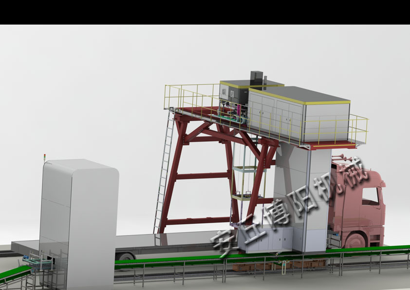 2、全方位垂直裝車機:桁架可以前后移動,可以在桁架上左右移動,也可以在行架上進行高低方向移動,并且可以360度旋轉,通過全方位的移動實現貨物袋在各種車型上的預定放置