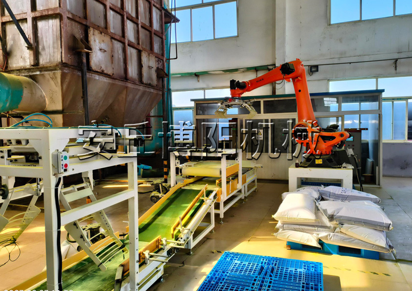 六氯苯胺自動碼垛機(jī) 自動碼垛機(jī)器人使用現(xiàn)場