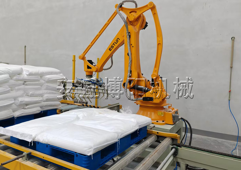 安丘博陽機械氧化鋅自動碼垛機器人 全自動碼垛機械手使用現(xiàn)場