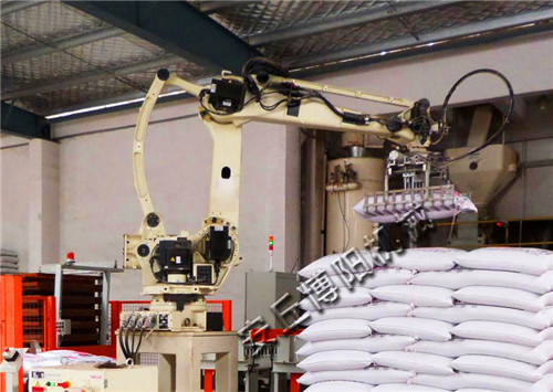 堿粉包裝碼垛生產(chǎn)線,自動(dòng)碼垛機(jī) 現(xiàn)場(chǎng)