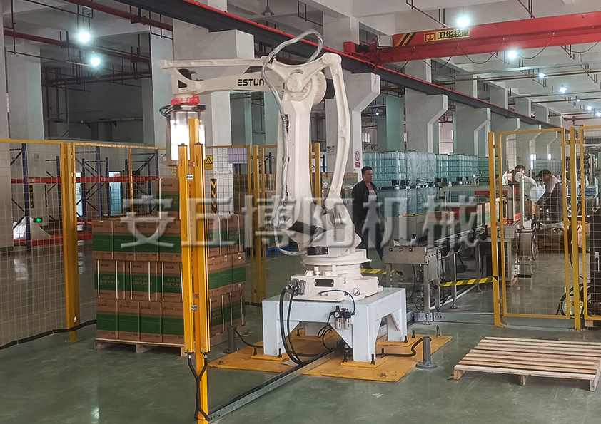 紙箱料全自動碼垛機 箱子自動碼垛機械手客戶現(xiàn)場